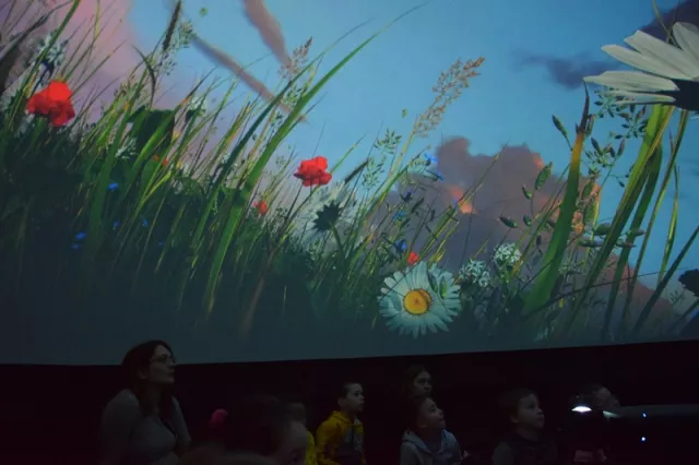 Wyjątkowym punktem pierwszego dnia były seanse kina sferycznego w Domu Ludowym. Dzięki projekcji 360° dzieci mogły w pełni zanurzyć się w prezentowanych historiach.